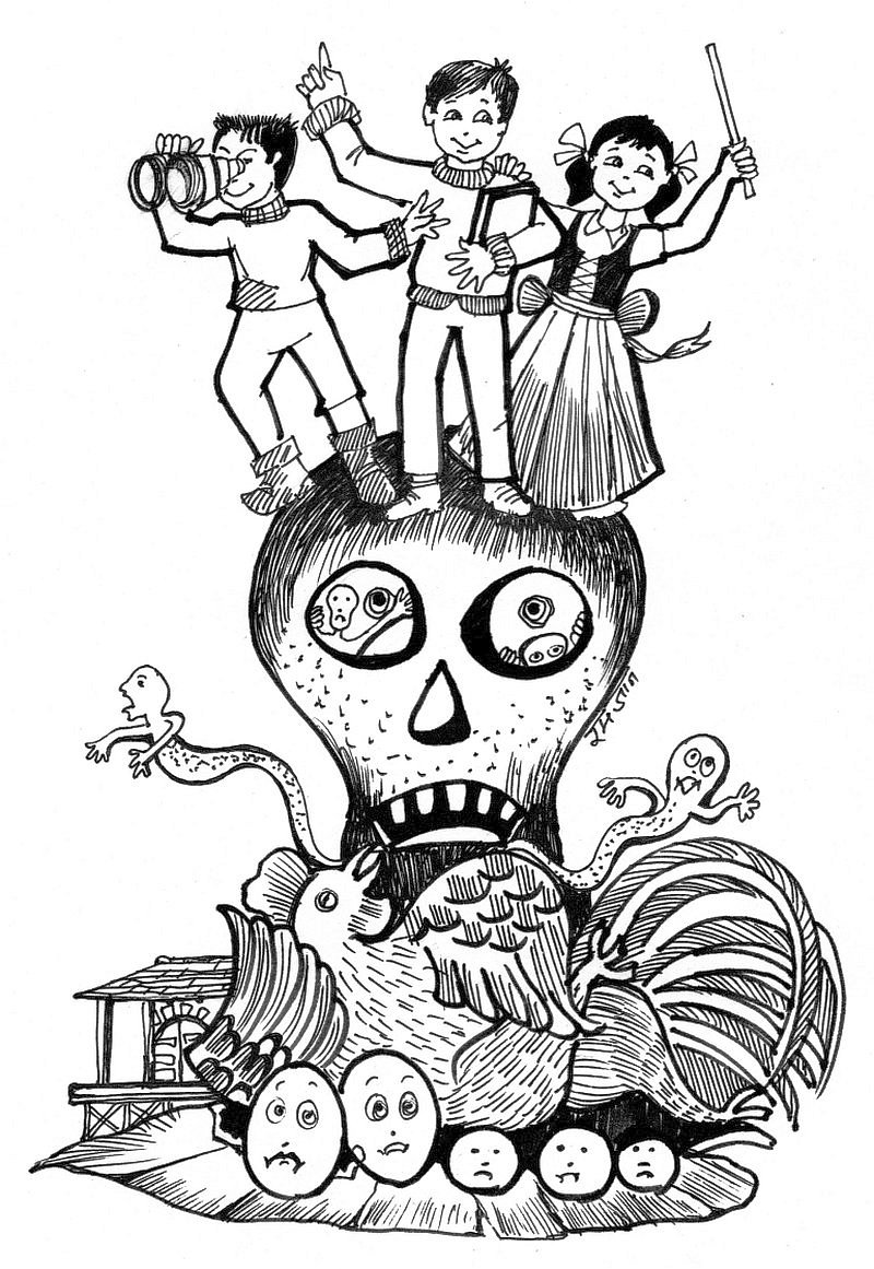 हुर्रे भुताची, हुर्रे भगताची। आपण सारे गाऊ या।