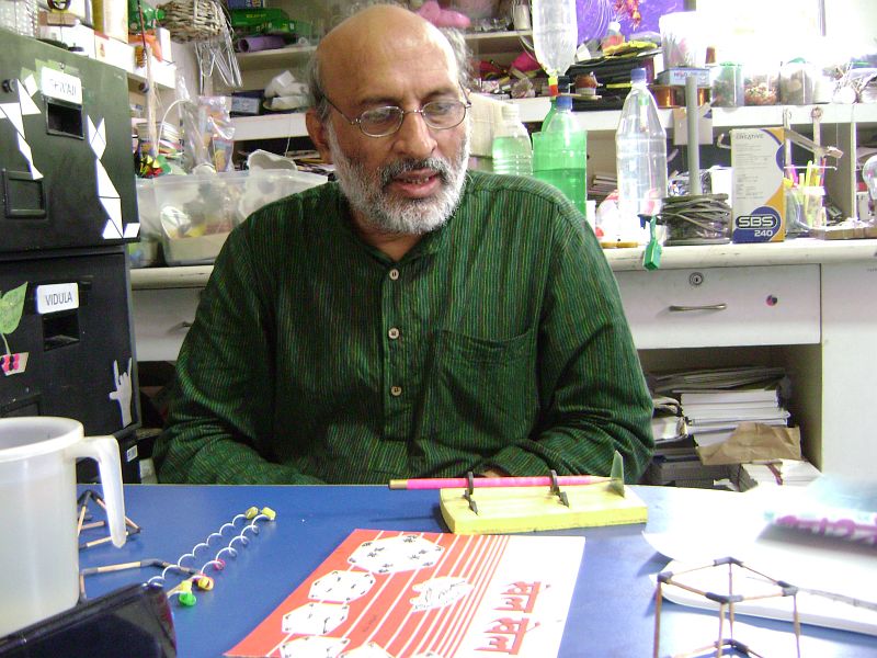 अरविंद गुप्ता : माचीसच्या काड्यांशी खेळता खेळता माझ्या लक्षात आले की, माचिसची काडी सायकलच्या छोट्या वाल्व नळीमध्ये एकदम व्यवस्थित बसते. त्यातून मग वेगवेगळे आकार आणि वेगवेगळ्या भौमितिक आकृत्या जसे त्रिकोण, चौकोन, प्रिझम, पिरामिड बनवणे शक्य झाले. यातून मग मुलांना वस्तूचे आकार, त्यांचा वास्तव जीवनाशी संबंध शिकवता येणे शक्य झाले. जगभरात मेकानो कितीतरी महाग असतात पण आमच्याकडे मुले फक्त काड्यापासून मेकानो बनवू शकतात. माझे म्हणणे आहे की, मुले जेव्हा खेळणी मोडून बघतात तेव्हाच ती खर्‍या अर्थाने शिकत असतात. कारण त्यांच्या मनात खेळण्याच्या पोटात काय आहे याची जिज्ञासा असते. मुलांसाठी खेळणी अशी हवीत की, ती त्यांना मोडता यावीत आणि जोडता यावीत. नाहीतर महागाची खेळणी आणली जातात आणि शो-केसमध्ये बंद राहतात. 1978 मध्ये ‘खेल खेल मे’ हे पुस्तक लिहून काढले. त्यात मुलांना घरच्या घरी स्वत: बनवता येतील अशा खेळण्याची माहिती होती. ते घेऊन मी प्राध्यापक यशपाल यांच्याकडे गेलो. तेव्हा ते डी.एस.टी.चे सचिव होते. सुरवातीला 2000 प्रती छापण्याचा विचार होता. त्यांनी मला फेलोशिप दिली, आणि पहिली प्रिंट ऑर्डर 25000 प्रतींची निघाली. या पुस्तकाच्या तेरा भाषात मिळून सात लाख प्रती निघाल्या आहेत.