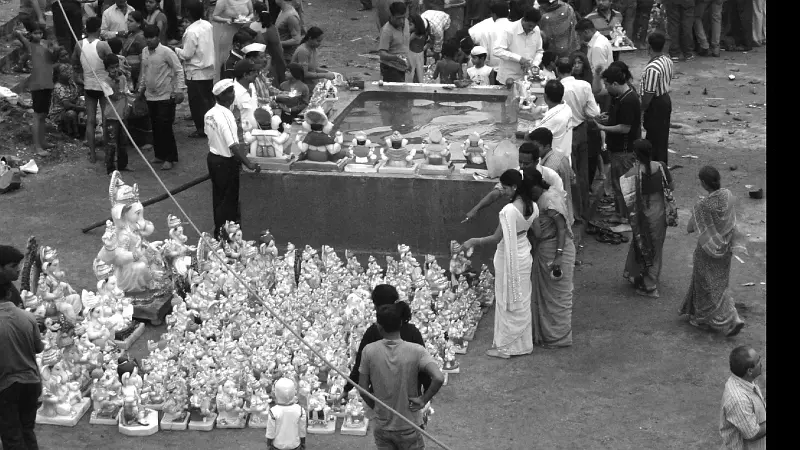 एकट्या मुंबईत गणेशोत्सवाच्या 11 दिवसांत 13 कोटी 30 लाखांची फुले विकली गेली. त्यामुळे 60 टन इतके निर्माल्य तयार झाले. हे निर्माल्य प्लॅस्टिकच्या पिशव्यांमधून वाहत्या पाण्यात जाऊ नये म्हणून मुंबई महानगरपालिकेने अवघ्या 16 ठिकाणी निर्माल्य-कलश ठेवले हेते. काही ठिकाणी व्हॅन ठेवल्या हेत्या. ट्रॉलर्स काही ठिकाणी फारच अस्वचछ होते.